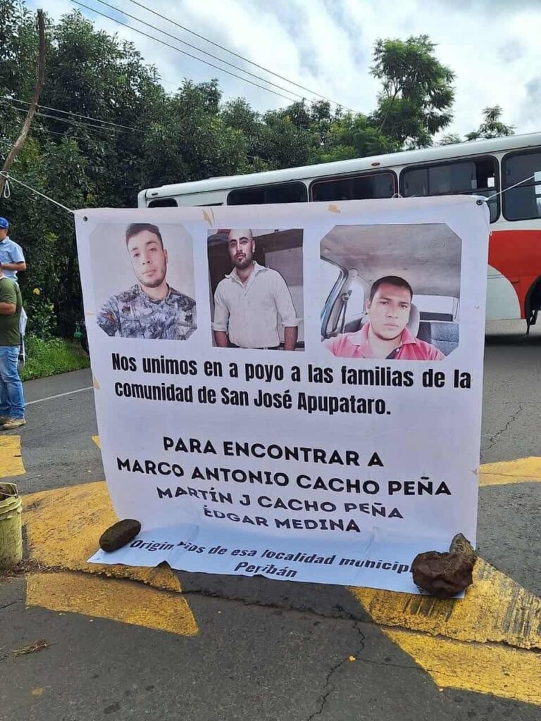 Peribán, Mich.- La mañana de este jueves un grupo de habitantes de la comunidad de Apupátaro bloqueará nuevamente la carretera que conecta San Francisco Peribán con Los Reyes, como parte de una protesta que busca presionar a las autoridades para que atiendan el caso de varios jóvenes desaparecidos.