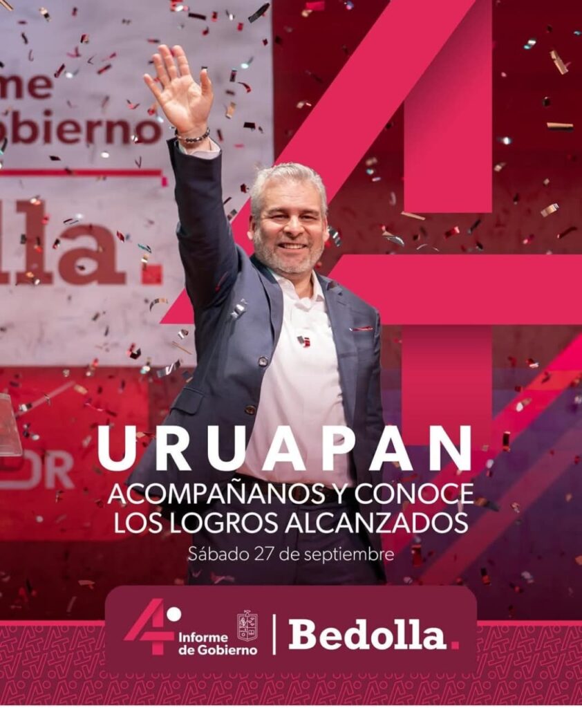 Uruapan, 27 de septiembre de 2025.- En su 4º informe regional, Alfredo Ramírez Bedolla decidió dejarlo claro: las obras que transforman a Uruapan llevan sello estatal y no precisamente el del alcalde Carlos Manzo. Con tono triunfal, anunció 600 millones de pesos para 2026, “sin deuda pública” y con la promesa de no dejar solo al municipio.